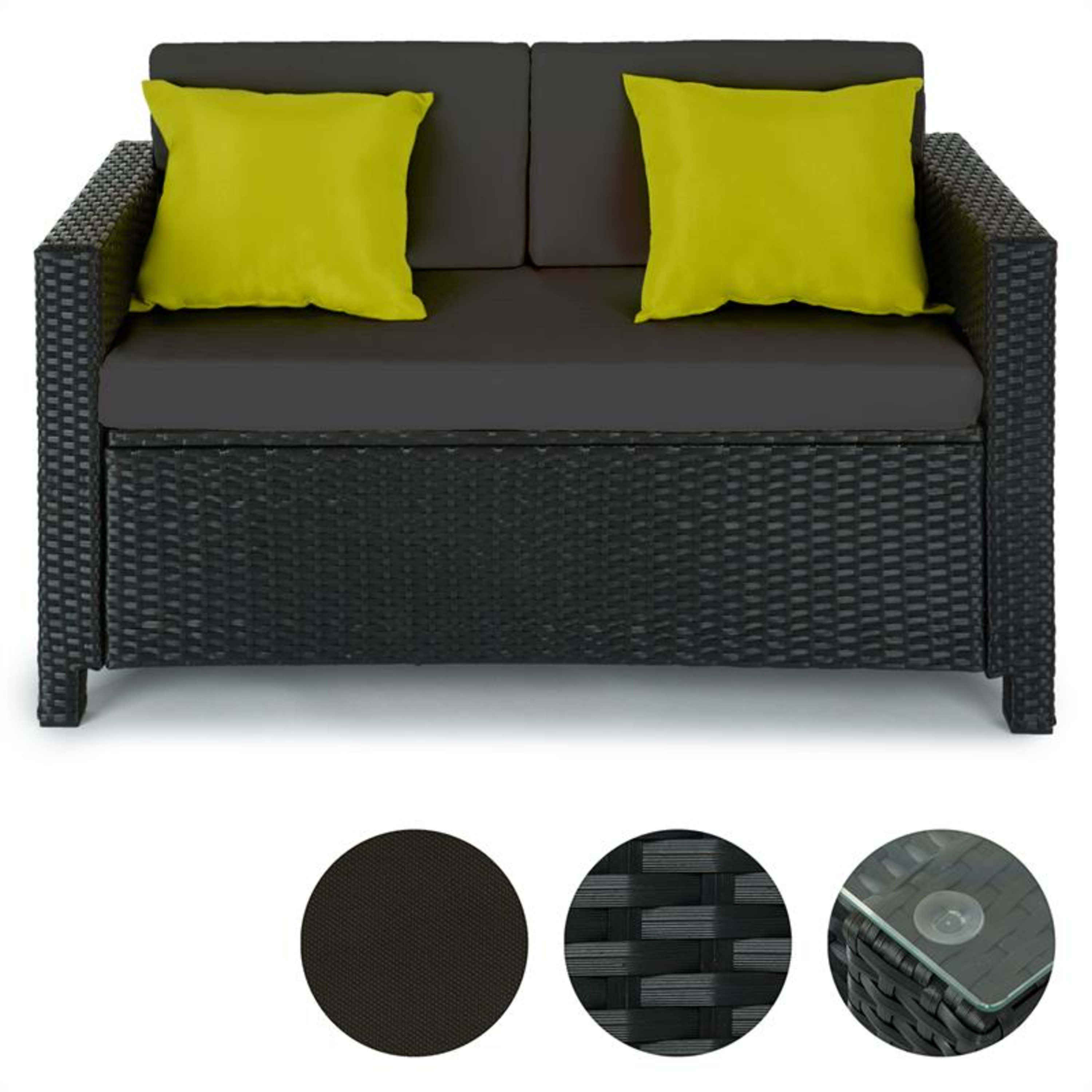 Il salottino da giardino Verona di Blumfeldt è resistente agli agenti atmosferici ed estremamente stabile: il telaio in acciaio è completamente zincato e verniciato a polvere. A prova di ruggine. Il rivestimento in polyrattan riproduce fedelmente l'aspetto dei vimini ed è resistente ai raggi UV.