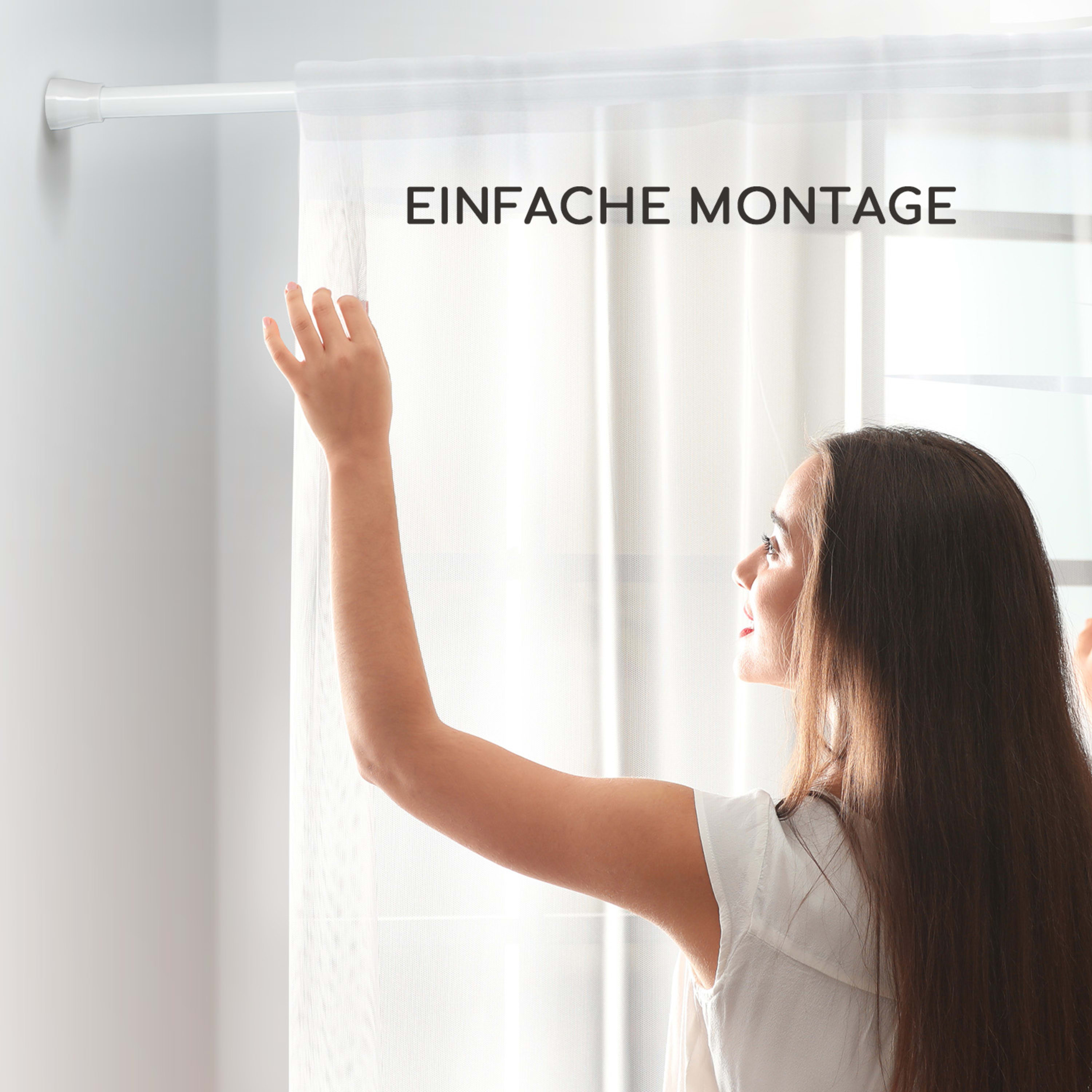 Günstige Teleskopstange mit gutem Preis-Leistungs-Verhältnis Ich habe die Teleskopstange zweckentfremdet und als Befestigunsmöglichkeit für Weihnachtsschmuck in einem Durchgang verwendet. Die Montage ist denkbar einfach, durch drehen der Teleskopstange wird die Länge angepasst. Das verwendet Metall mach einen sehr dünnen Eindruck, ich kann mir nicht vorstellen dass sehr schwere Vorhänge oder sonstige Gegenstände getragen werden. Aber für diesen Preis hatte ich das auch nicht anders erwartet. Für das dünne Material bekommt die Teleskopstange einen Punkt Abzug, ansonsten ist sie auf jedenfall brauchbar.