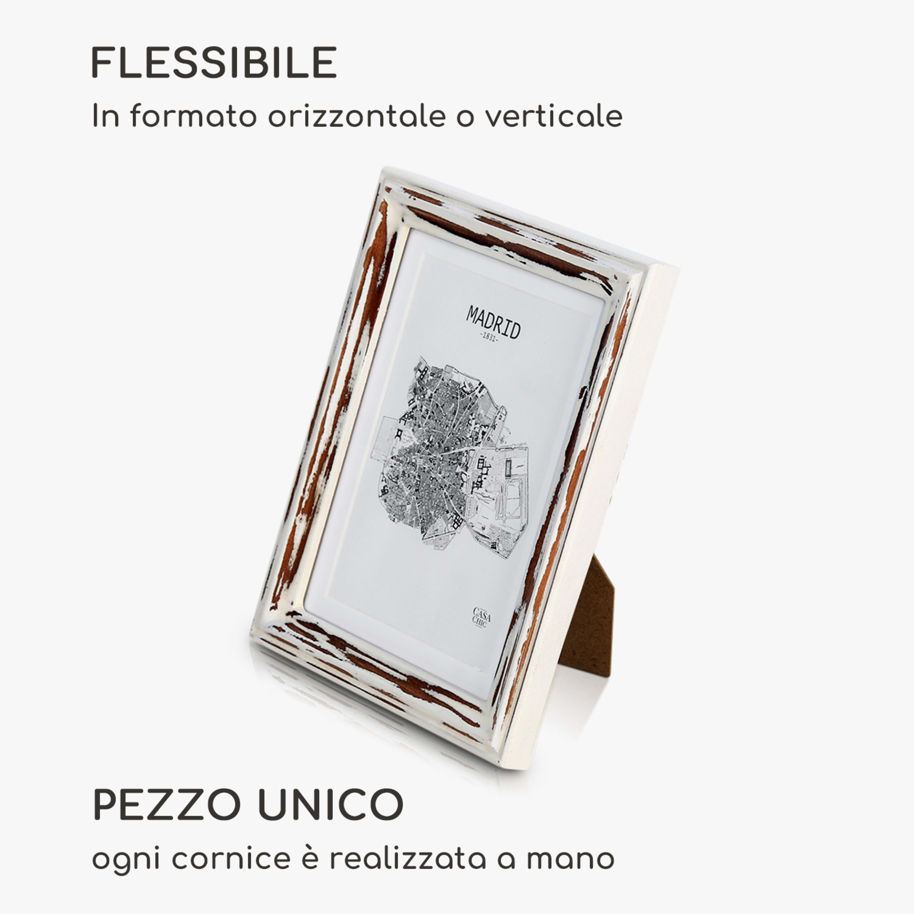 Ogni cornice è unica: la cornice Lancaster di Casa Chic by blumfeldt è realizzata a mano in legno di pino pregiato dal look shabby chic e valorizza foto e immagini sia in formato verticale che orizzontale. Decora con flessibilità le pareti con fantastici collage o disponi le tue foto preferite sul comodino o sullo scaffale. Il passepartout incluso ti permette di scegliere il formato ideale per la tua immagine. Il profilo della cornice con tutti e quattro i lati di dimensioni uguali e il pannello frontale in vetro assicurano eleganza e protezione.
