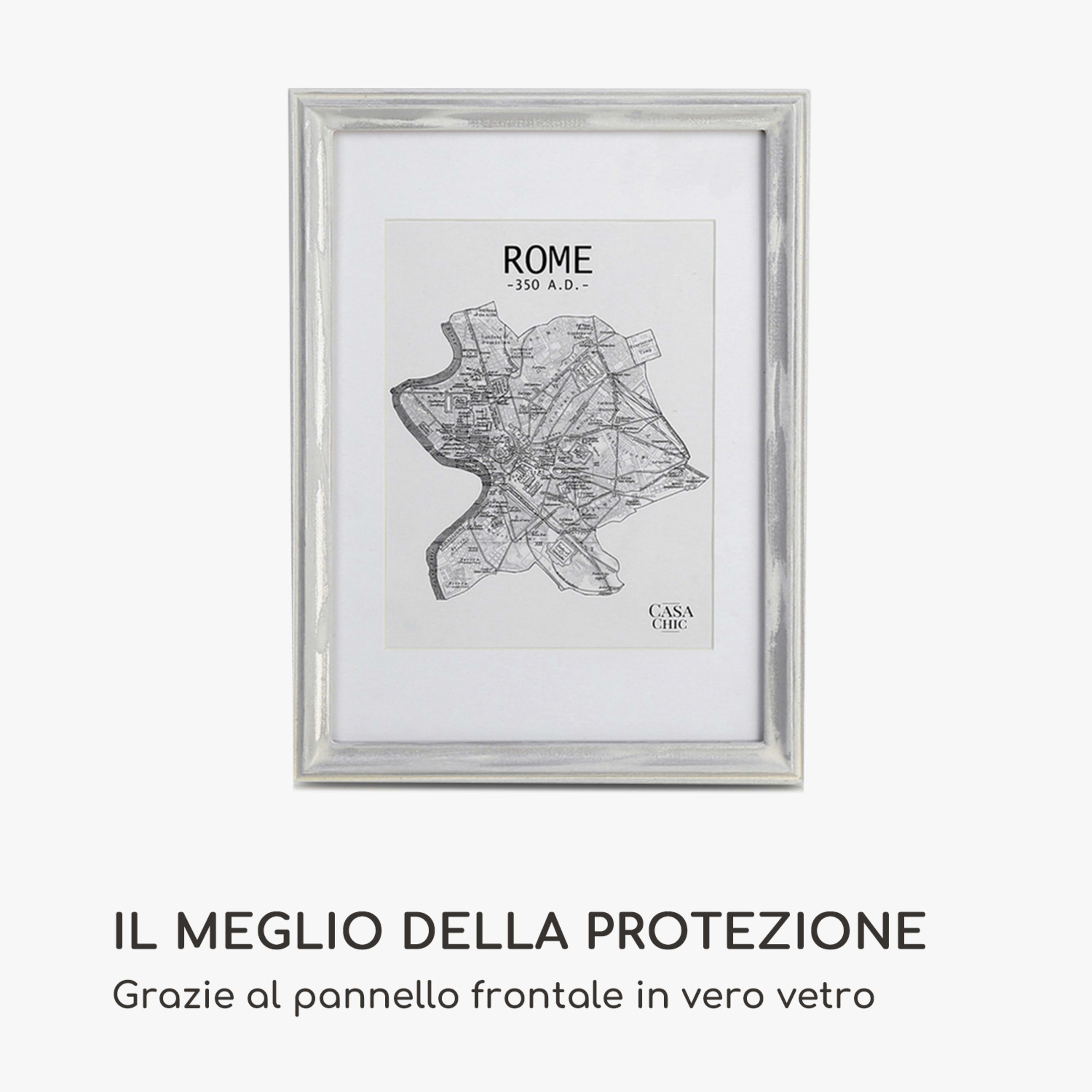 Ogni cornice è unica: la cornice Lancaster di Casa Chic by blumfeldt è realizzata a mano in legno di pino pregiato dal look shabby chic e valorizza foto e immagini sia in formato verticale che orizzontale. Decora con flessibilità le pareti con fantastici collage o disponi le tue foto preferite sul comodino o sullo scaffale. Il passepartout incluso ti permette di scegliere il formato ideale per la tua immagine. Il profilo della cornice con tutti e quattro i lati di dimensioni uguali e il pannello frontale in vetro assicurano eleganza e protezione.