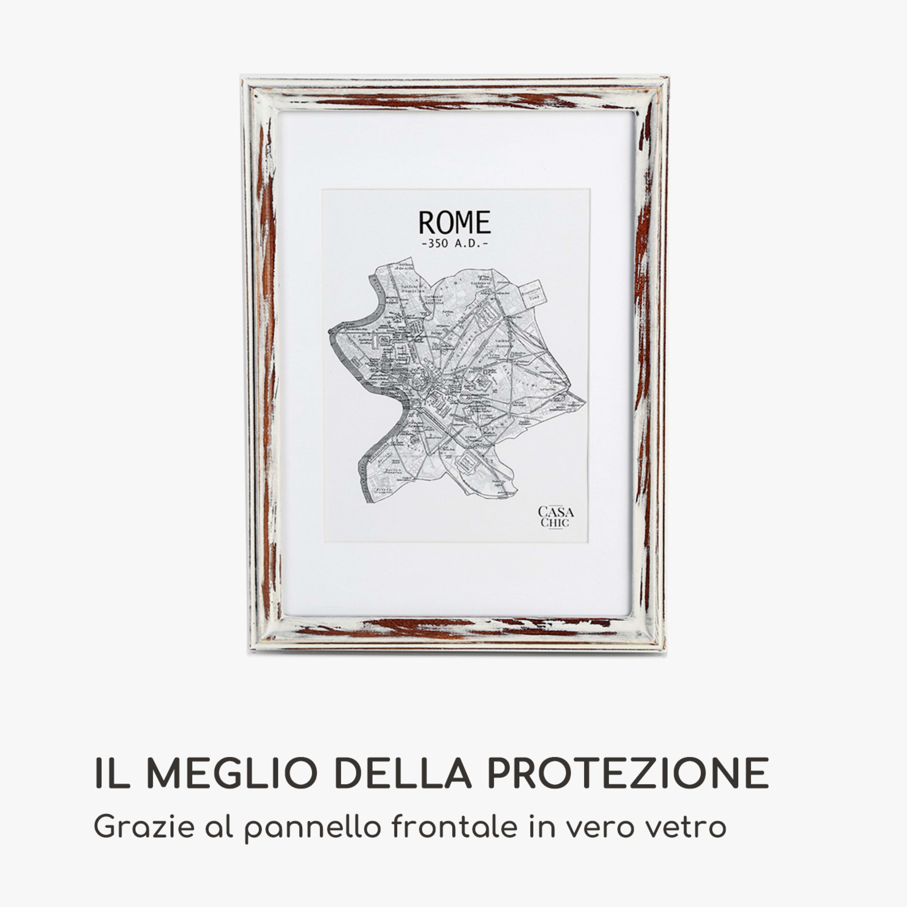 Ogni cornice è unica: la cornice Lancaster di Casa Chic by blumfeldt è realizzata a mano in legno di pino pregiato dal look shabby chic e valorizza foto e immagini sia in formato verticale che orizzontale. Decora con flessibilità le pareti con fantastici collage o disponi le tue foto preferite sul comodino o sullo scaffale. Il passepartout incluso ti permette di scegliere il formato ideale per la tua immagine. Il profilo della cornice con tutti e quattro i lati di dimensioni uguali e il pannello frontale in vetro assicurano eleganza e protezione.