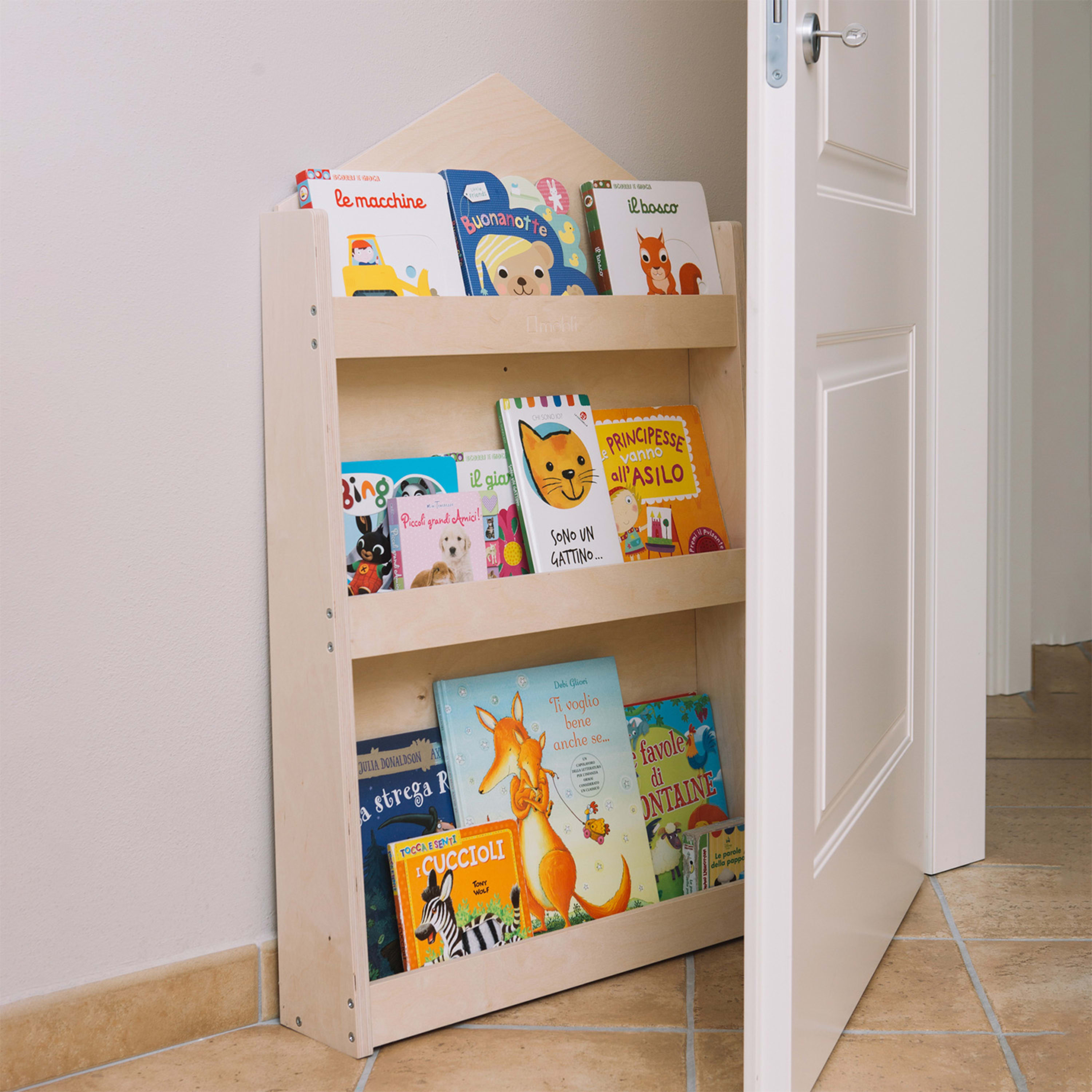 Progettati da giovani pedagogisti nel rispetto del metodo di apprendimento di Maria Montessori, sui nostri scaffali i libri si presentano dal loro lato più bello: la copertina. Perché cosa invita ad aprire e leggere un libro più della sua coloratissima copertina? Sui tre ripiani a misura di bambino c'è spazio per un massimo di 30 libri, che possono essere tolti e riposizionati dai più piccoli in modo completamente autonomo. Per mantenere viva la curiosità, ti consigliamo di cambiare i libri una volta al mese, in modo che il tuo bambino abbia sempre qualcosa di nuovo da scoprire.