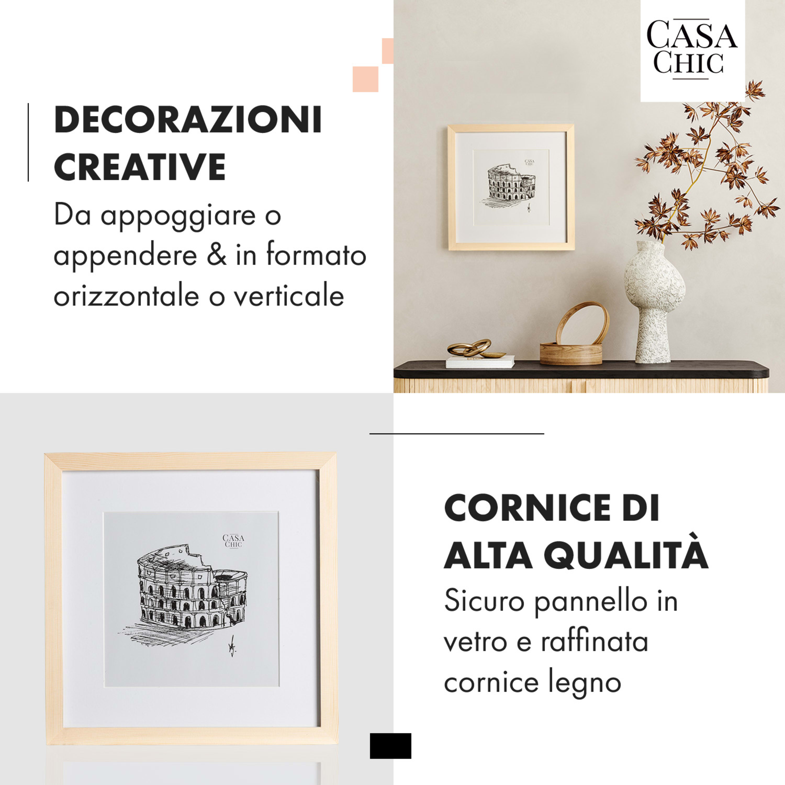 Semplice, discreta e quadrata: queste sono le caratteristiche della cornice in legno York di Casa Chic by blumfeldt. Il suo design ridotto dona ad ogni immagine o foto lo spazio necessario, con o senza passepartout. Appoggiate su una mensola o appese alla parete, le cornici York sono la soluzione ideale per mettere in mostra le tue foto preferite. Dietro il pannello in vetro di sicurezza potrai conservare gli scatti di momenti speciali e tornare a sorridere ogni giorno rivivendo ricordi bellissimi.